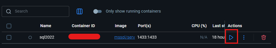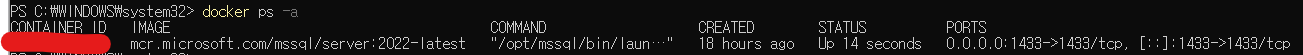 4. SQL Sever 컨테이너가 정상적으로 실행되었는 지 확인합니다.