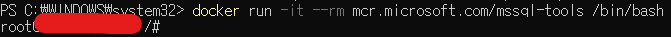 docker run -it --rm mcr.microsoft.com/mssql-tools /bin/bash